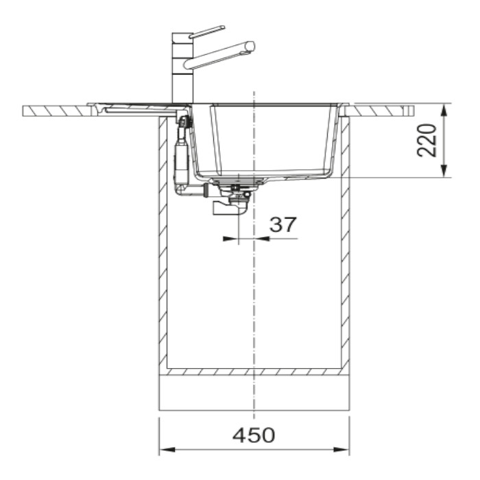 - Ausschnitt Obeneinbau Länge: 600 mm